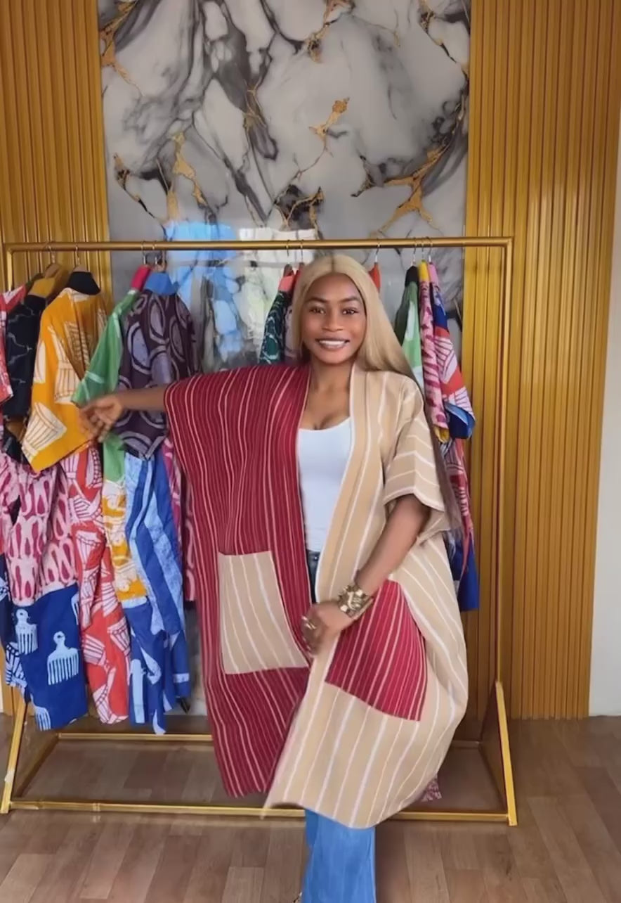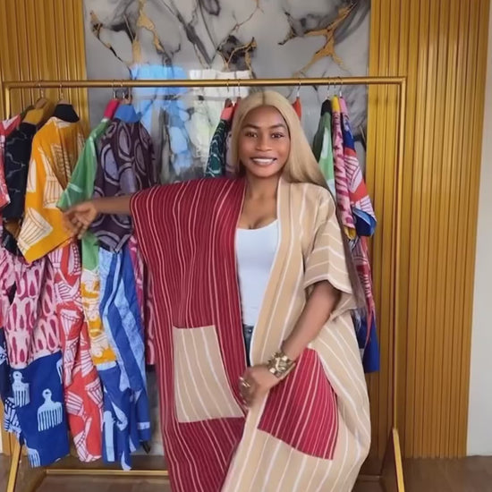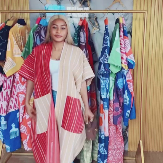 Made with 100% Aso oke Fabric that is timeless, has 2 wide pockets and can be styled For a Formal look with Turtlenecks and Pants or a Casual look with Denim and Sneakers